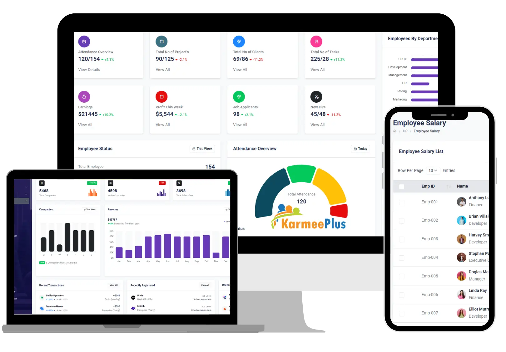 KarmeePlus is designed to streamline end-to-end HR and payroll operations. It centralizes employee data, automates approval workflows, and integrates attendance with payroll, reducing errors and saving time. Built for flexibility, KarmeePlus supports configurable allowance structures, multiple loan and fund schemes, and robust reporting — making it a practical long-term investment for growth and employee satisfaction.